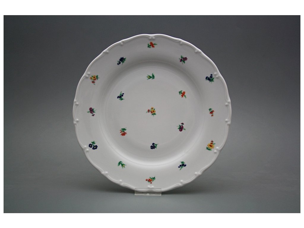 Praktischer flacher Teller 25cm, gefertigt aus böhmischem Markenporzellan von höchster Qualität.