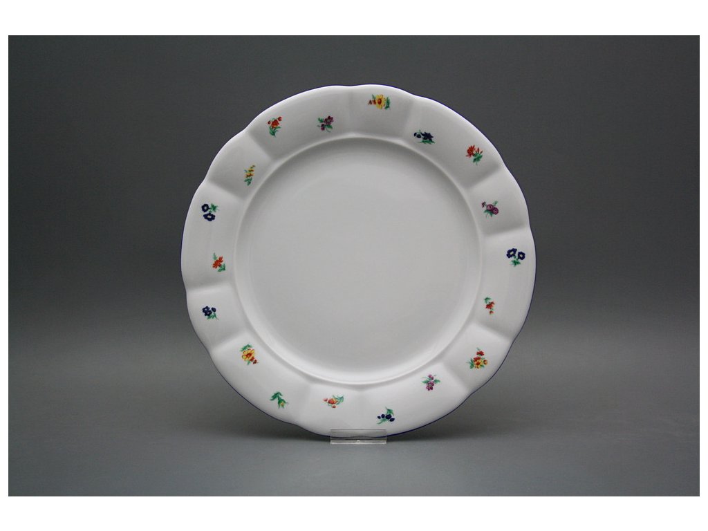 Praktischer flacher Teller 26cm, gefertigt aus böhmischem Markenporzellan von höchster Qualität. Brenntemperatur 820 Grad Celsius.