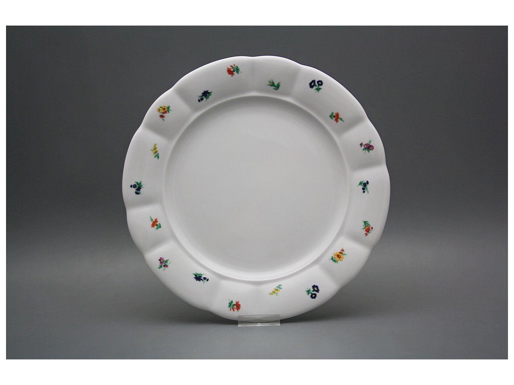 Praktischer flacher Teller 26cm, gefertigt aus böhmischem Markenporzellan von höchster Qualität. Brenntemperatur 820 Grad Celsius.