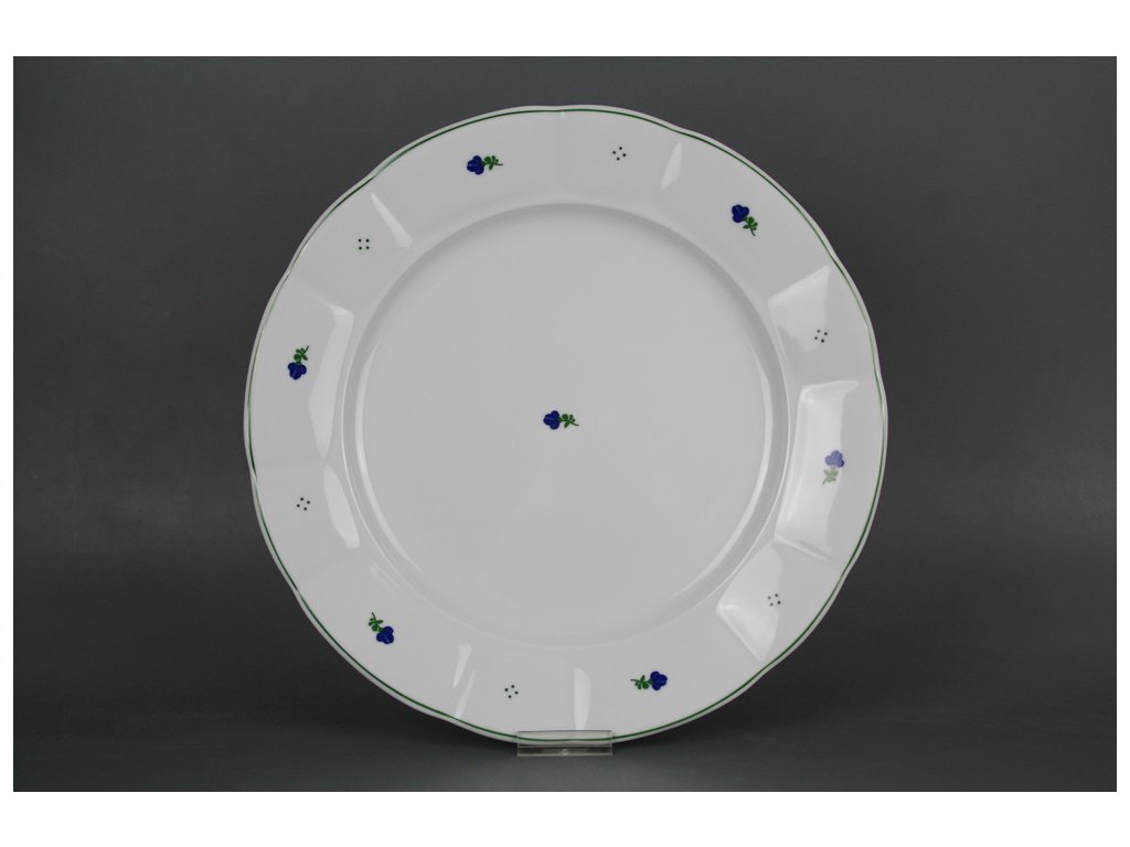 Praktischer flacher Teller 28cm, gefertigt aus böhmischem Markenporzellan von höchster Qualität. Brenntemperatur 1240 Grad Celsius.