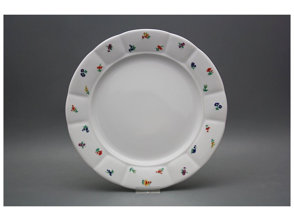 Praktischer flacher Teller 28cm, gefertigt aus böhmischem Markenporzellan von höchster Qualität. Brenntemperatur 820 Grad Celsius.