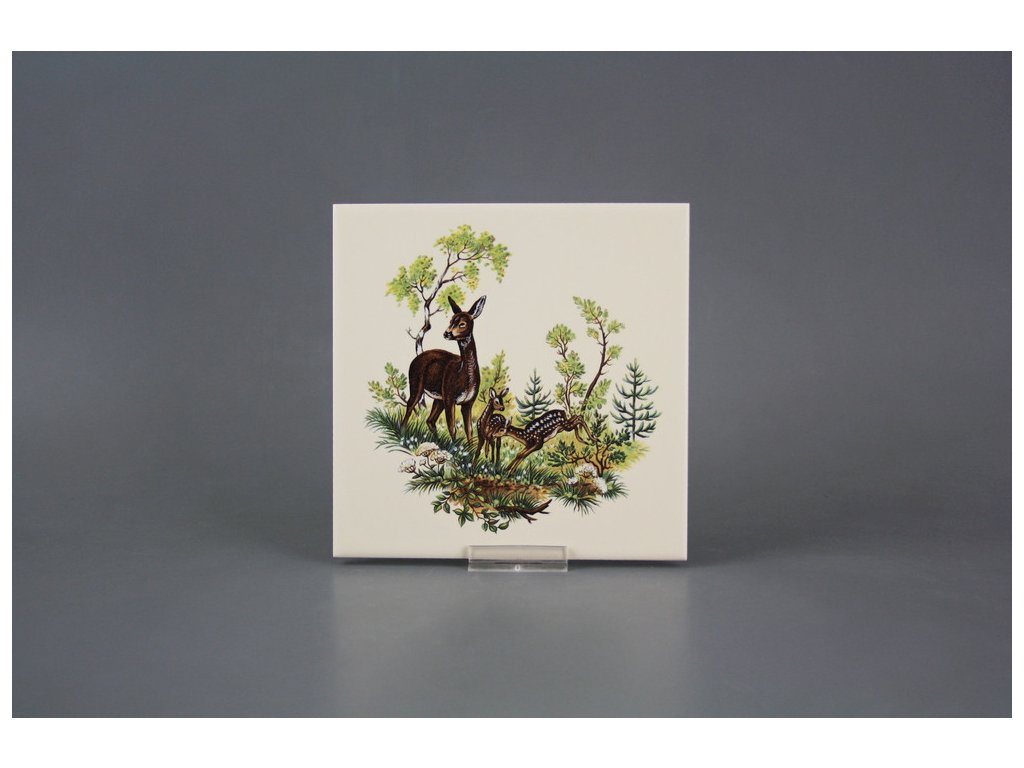 Fliese 15x15cm Reh mit Kitz hellbeige matt