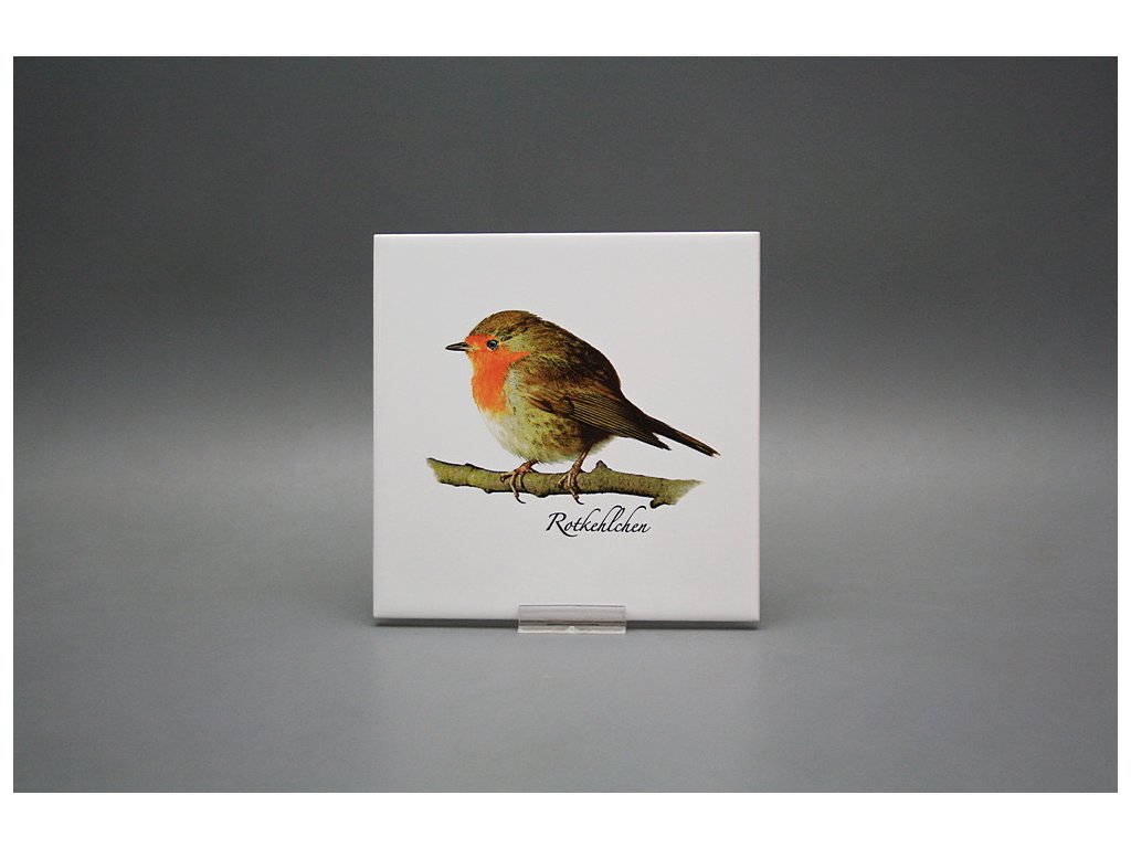 Fliese 15x15cm Rotkehlchen weiß glänzend