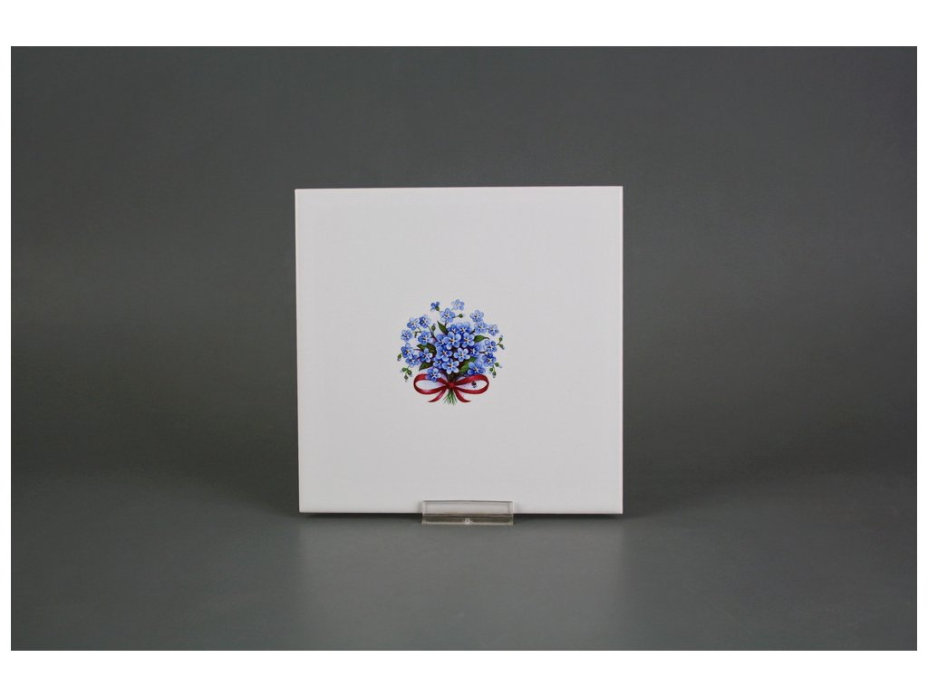 Fliese 15x15cm Vergissmeinnicht Motiv P weiß glänzend