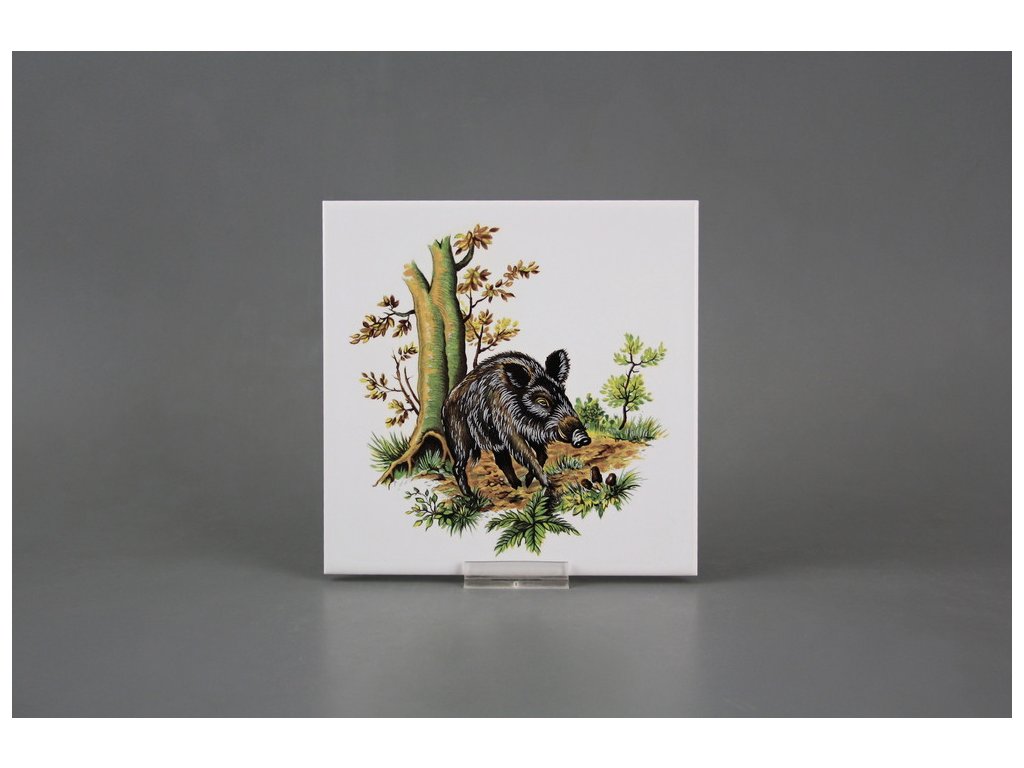 Fliese 15x15cm Wildschwein weiß glänzend