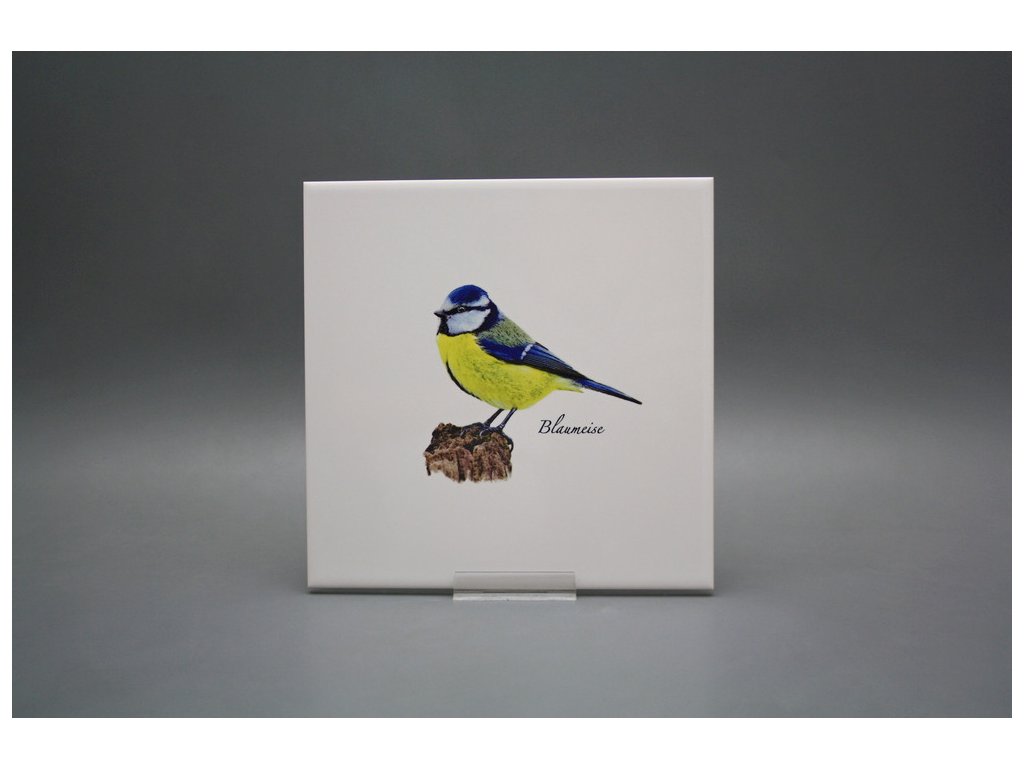 Fliese 20x20cm Blaumeise weiß glänzend