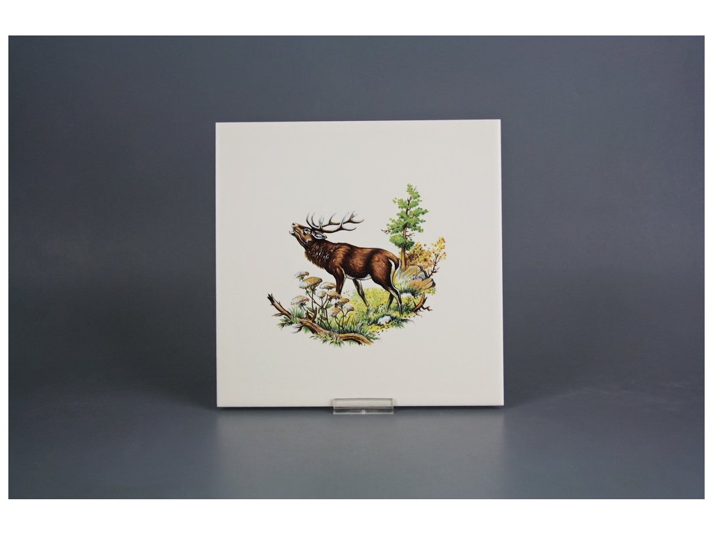 Fliese 20x20cm Röhrender Hirsch hellbeige matt