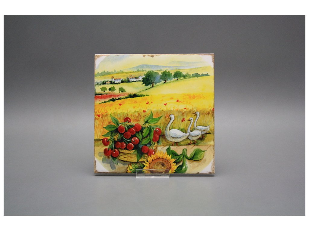 Hochwertige dekorierte keramische Wandfliese, ausgebrannt im Kammerofen bei der Temperatur in Höhe von 820° C – abriebfestes waschbares Dekor, weiß glänzende Oberfläche.