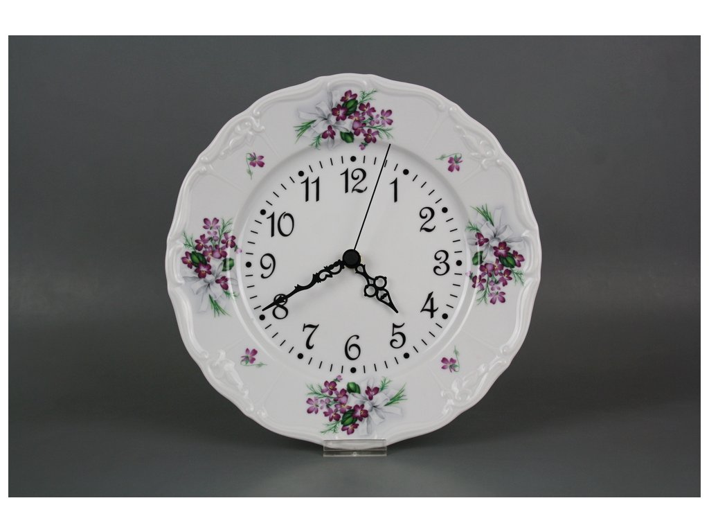 Klasické talířové hodiny 25cm z kvalitního českého porcelánu. Hodinový strojek Quartz (záruka 2 roky), baterie součástí dodávky.