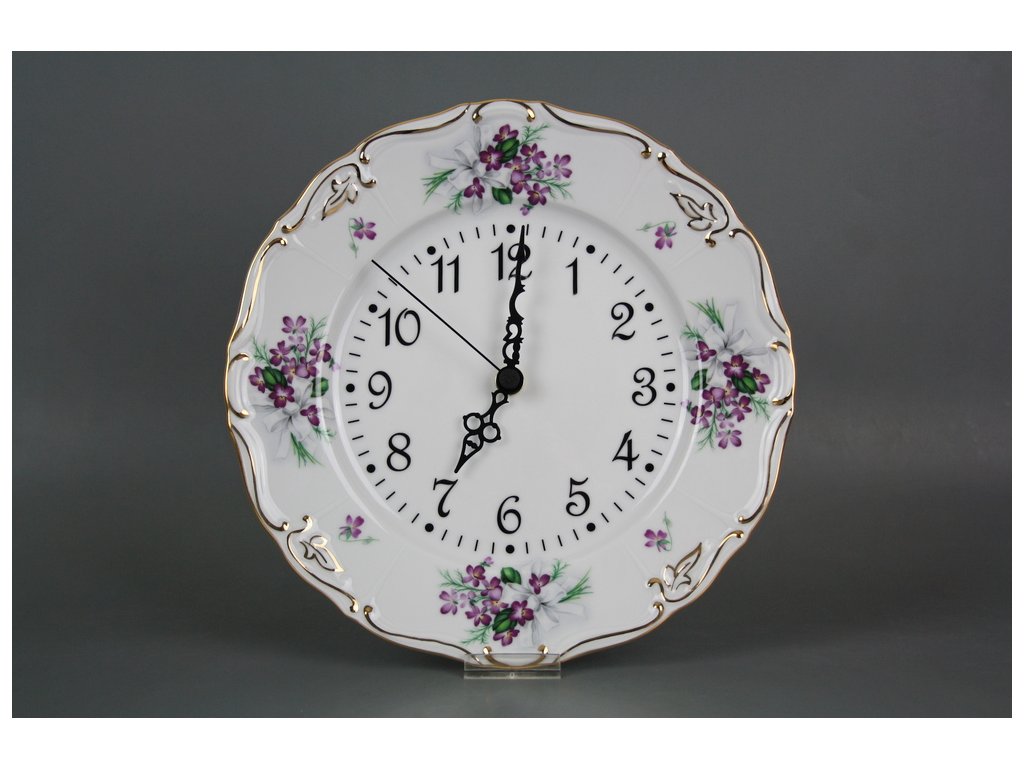 Luxusní talířové hodiny 25cm z kvalitního českého porcelánu, bohatá ruční dekorace lesklým zlatem. Hodinový strojek Quartz (záruka 2 roky), baterie součástí dodávky.