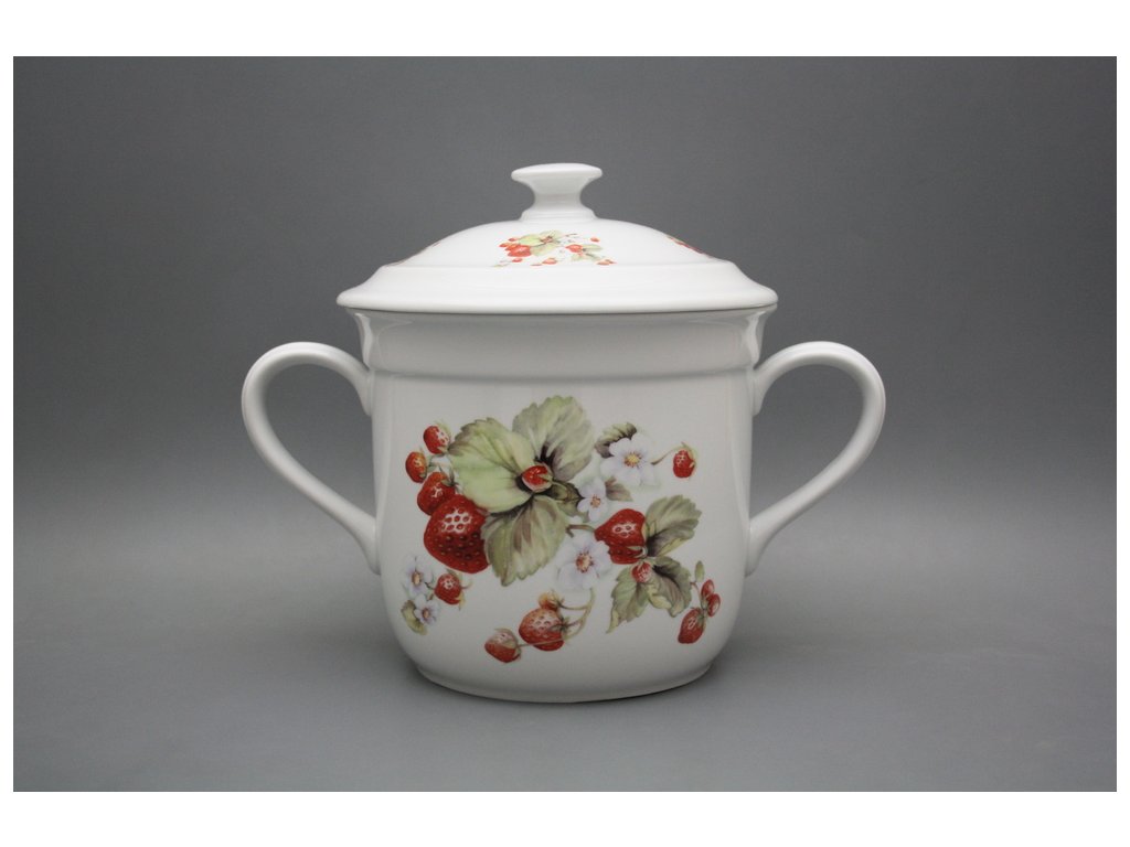 Hrnek český s 2 uchy a víkem bez výřezu Jahody BB