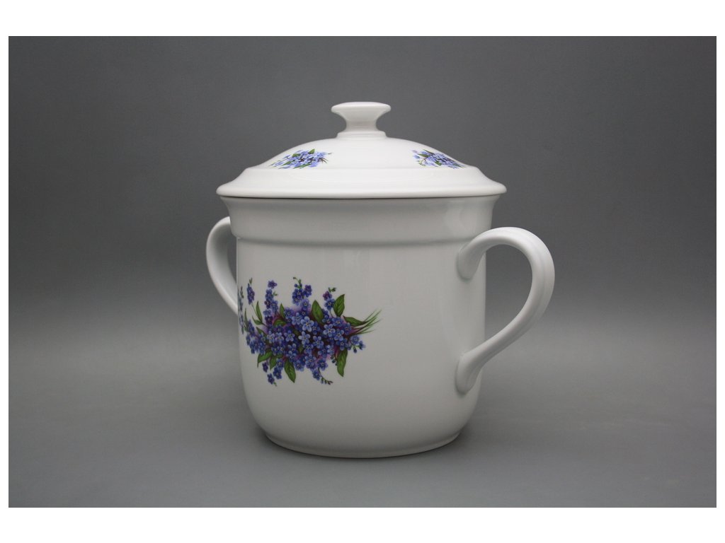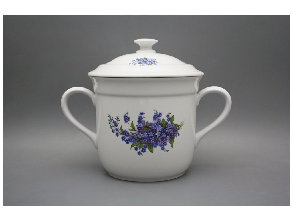 Hrnek český s 2 uchy a víkem bez výřezu Pomněnky BB