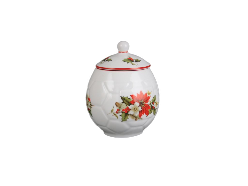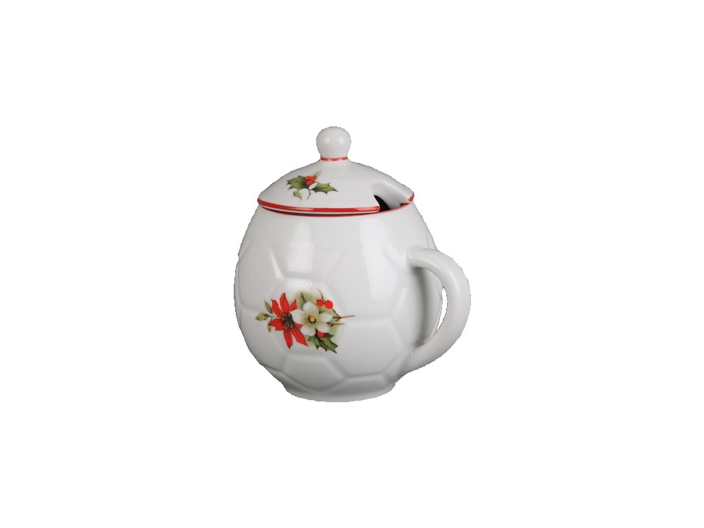 Praktický hrnek na med s víčkem z kvalitního českého porcelánu, červený okraj (CL) . Vhodný do myčky i mikrovlnné trouby.