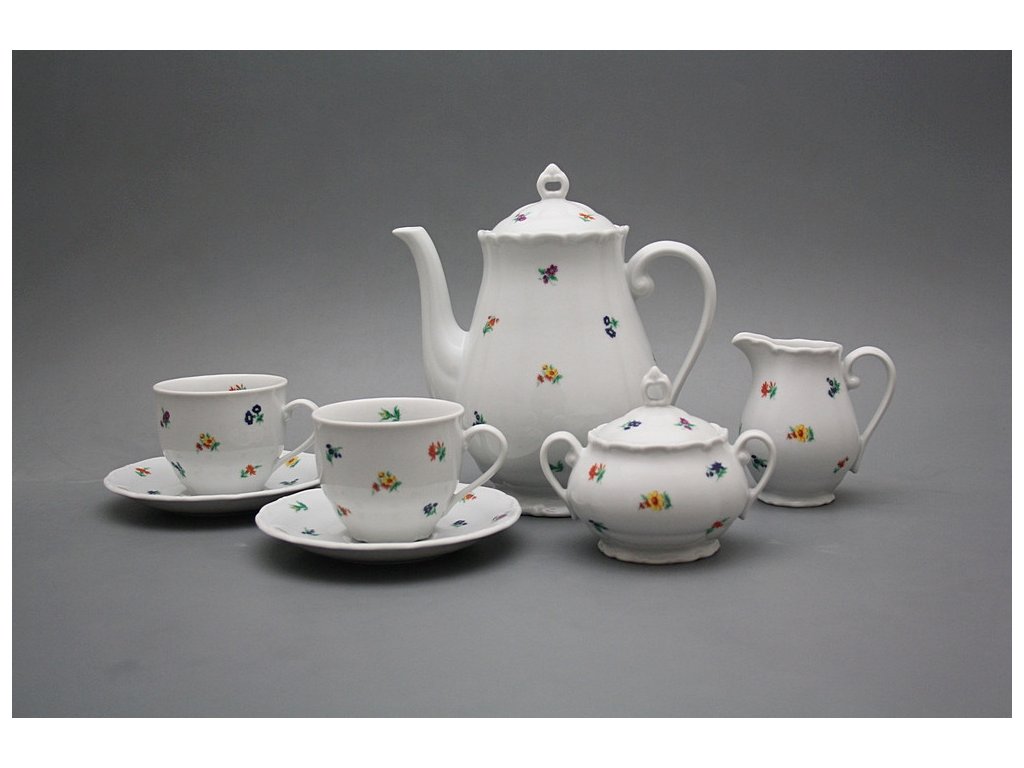 Praktisches 15teiliges Kaffeeset, gefertigt aus böhmischem Markenporzellan von höchster Qualität.