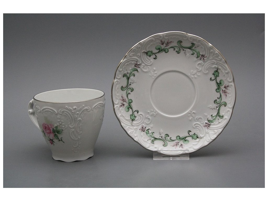 Luxuriöse Kaffeetasse 0,15l und Untertasse, gefertigt aus böhmischem Markenporzellan von höchster Qualität. Spülmaschinenfest und mikrowellentauglich, NEIN!!!