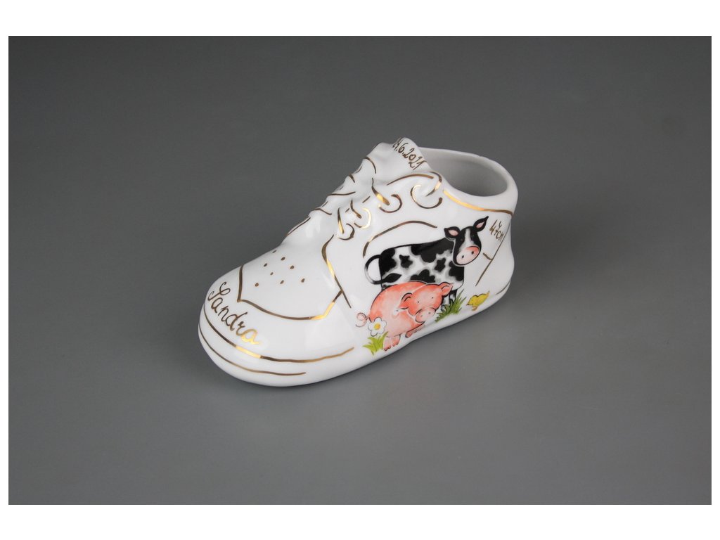 Original Porzellanschuh zur Geburt eines Kindes, glänzende Goldverzierung. Spülmaschine NEIN !!!