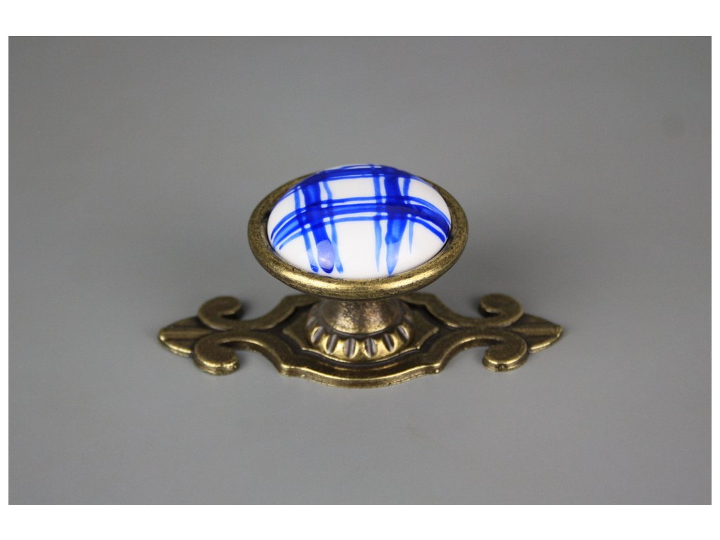 Nádherná rustikální knopka 40mm se štítem 7cm - provedení staromosaz (AM) v kombinaci s porcelánem. Jedná se o pravý karlovarský porcelán, nikoliv kameninu, přestože je mnohými výrobci mylně uváděn porcelán, teplota výpalu 820 st. Celsia. Ve spodní části je vrtaný závit M4 hluboký 15mm, součástí dodávky je lámací šroub s půlkulatou hlavou M4x20-45mm.
