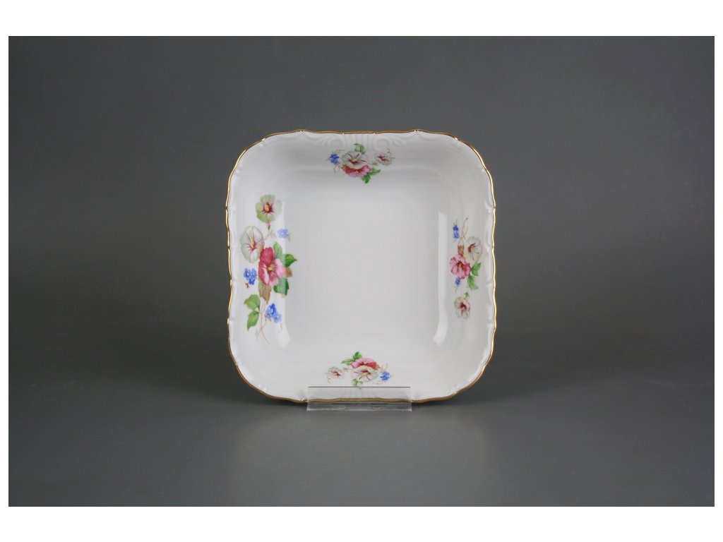 Čtyřhranná mísa 16cm (také jako kompotová) z kvalitního českého porcelánu, zlatý okraj (GL). Nevhodná do myčky i mikrovlnné trouby.