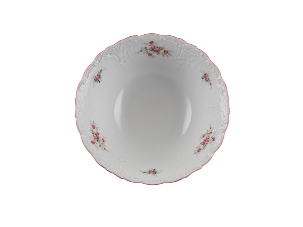 Luxusní praktická reliéfní mísa hluboká (kompotová) 25cm z kvalitního českého porcelánu, růžový okraj (RL). VHODNÁ do myčky i mikrovlnné trouby.