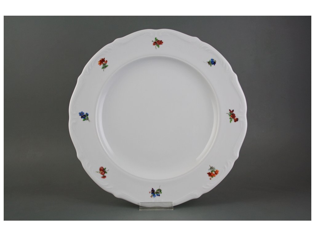 Luxusní kulatá mělká mísa 32cm z kvalitního českého porcelánu, decentní jemný dekor v kombinaci s bohatým reliéfem. VHODNÁ do myčky i mikrovlnné trouby.