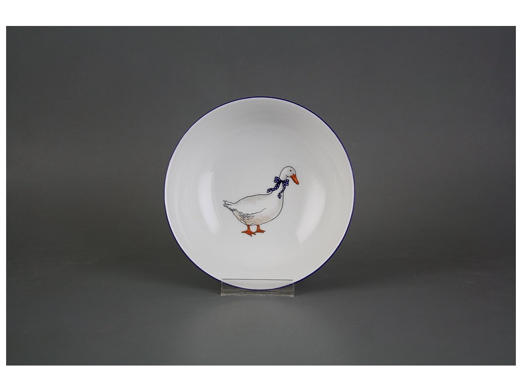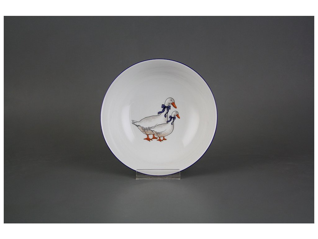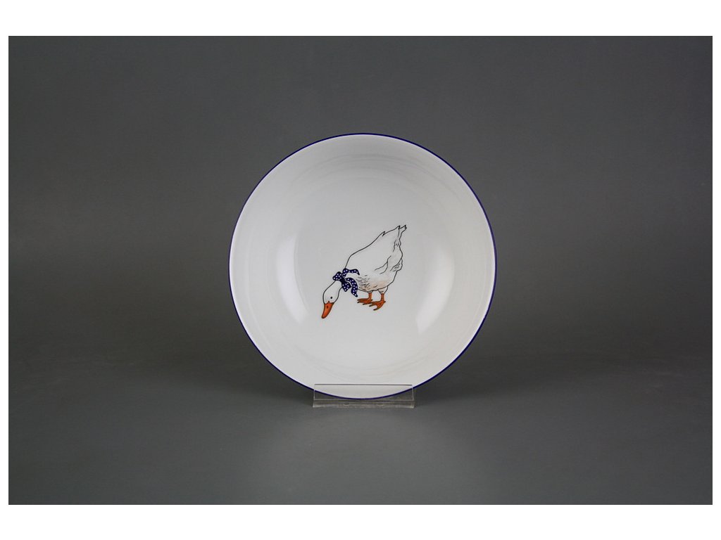 Praktická kompotová miska 15cm z kvalitního porcelánu, modrý okraj (ML). Vhodná do myčky i mikrovlnné trouby.