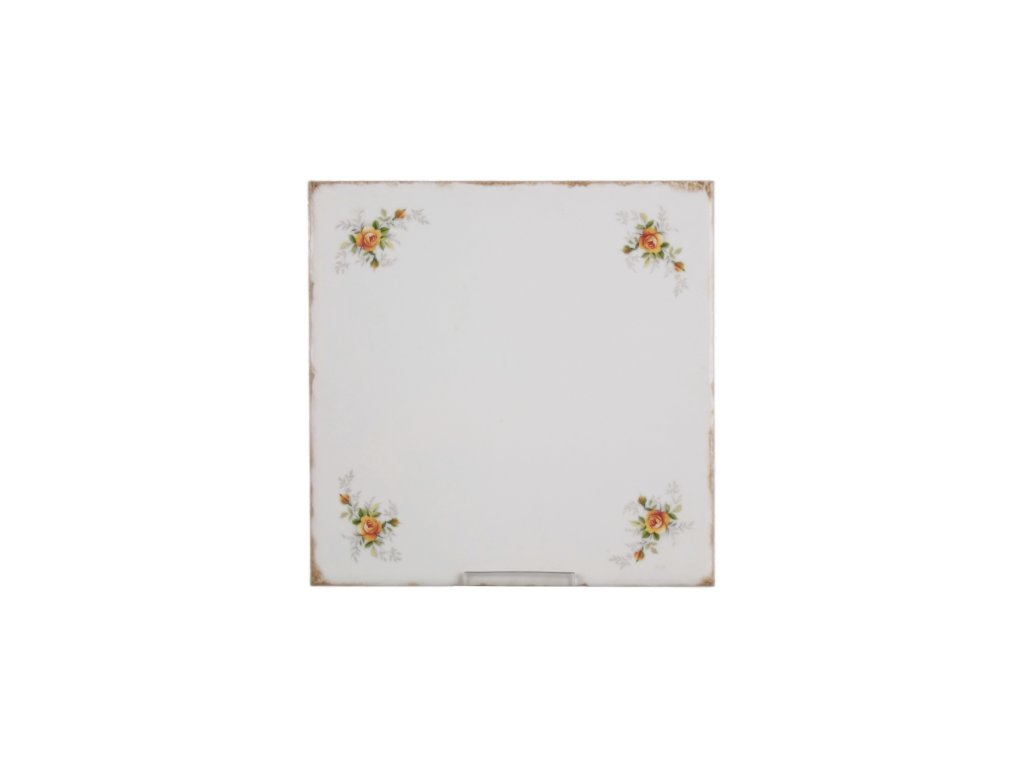 Kvalitní dekorovaný keramický obklad 15x15cm (Retro, Vintage styl) v I. jakostní třídě, páleno v komorové peci na teplotu 820 st. Celsia - nesmazatelný omyvatelný dekor. K dekoraci byl použit keramický obklad FORLI BLANCO, povrch lesklý, bílý, postaršený.