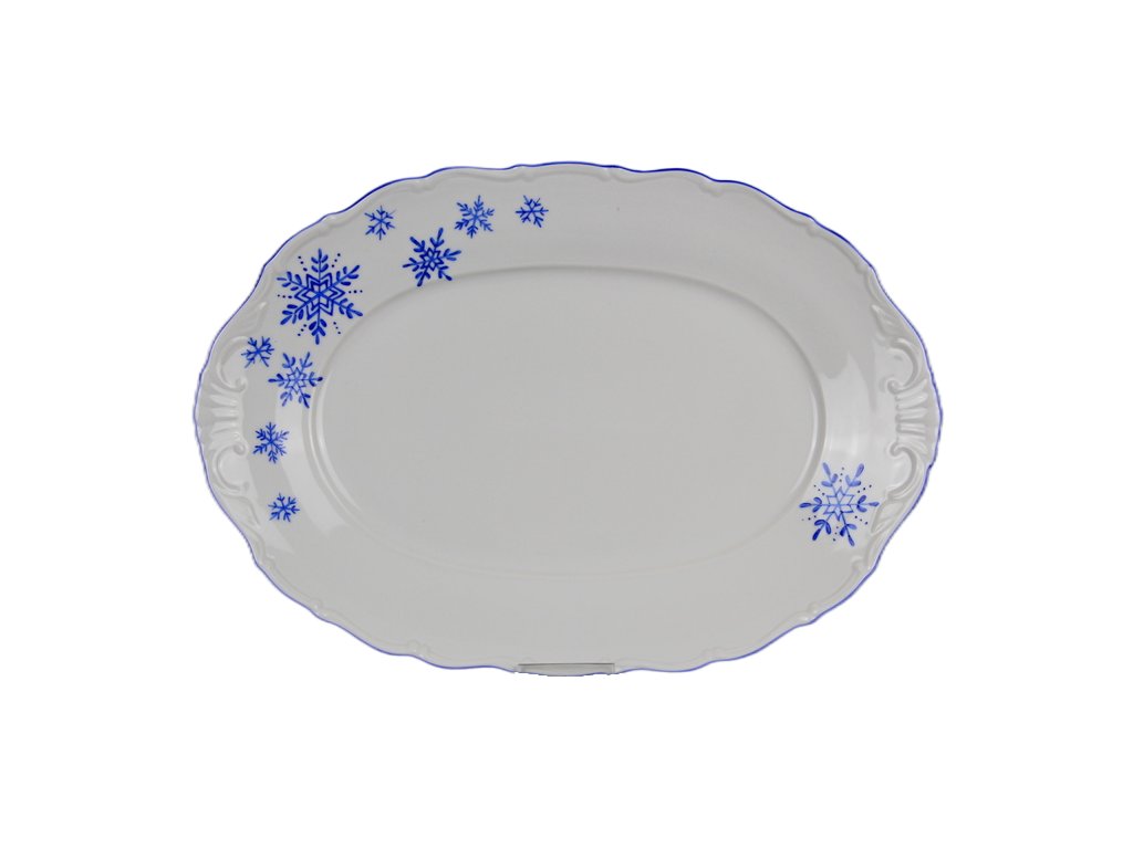 Praktický ručně malovaný ovál 32cm z kvalitního českého porcelánu, malováno keramickou azurovou barvou (AL). Vhodný do myčky i mikrovlnné trouby.