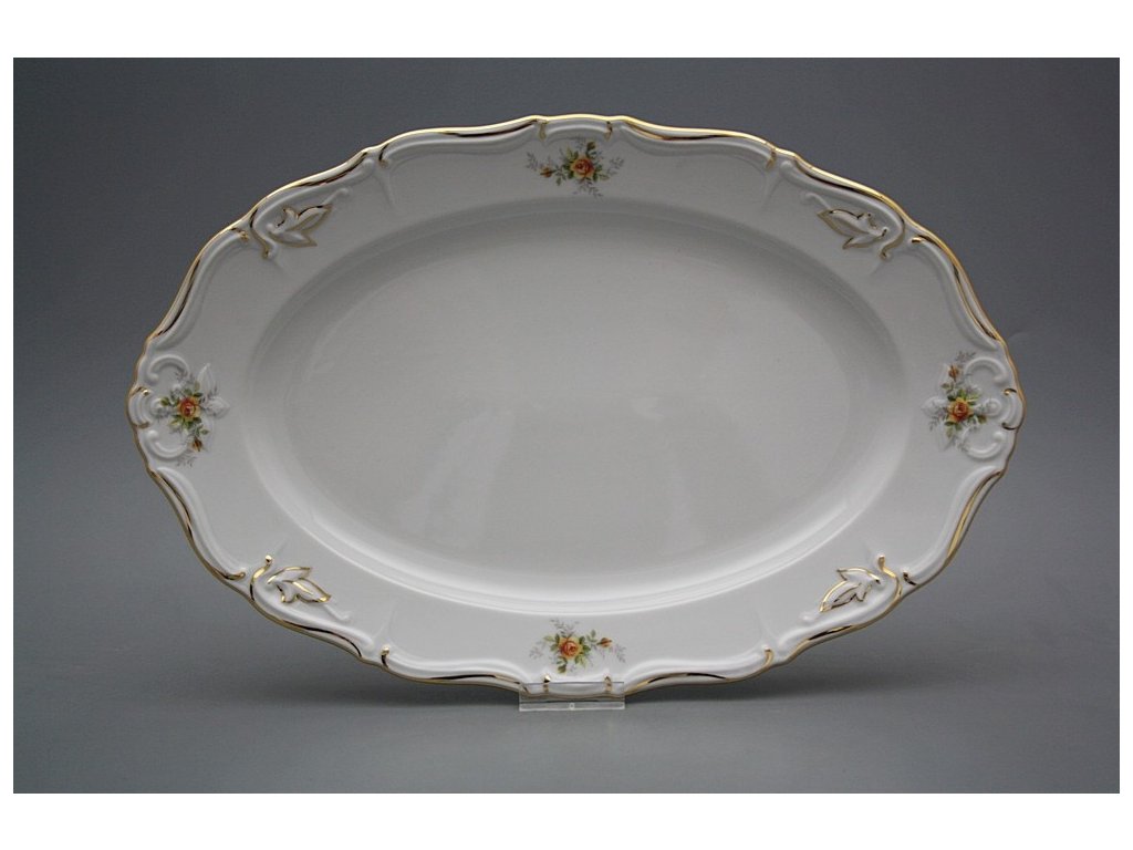 Luxuriöses Oval 34cm, gefertigt aus böhmischem Markenporzellan von höchster Qualität. Spülmaschinenfest und mikrowellentauglich, NEIN!!!