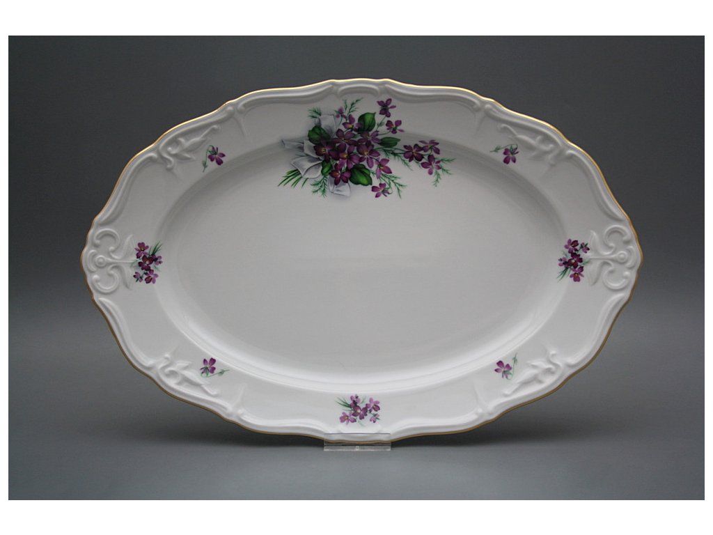 Luxuriöses Oval 34cm mit Goldrand, gefertigt aus böhmischem Markenporzellan von höchster Qualität. Spülmaschinenfest und mikrowellentauglich, NEIN!!!