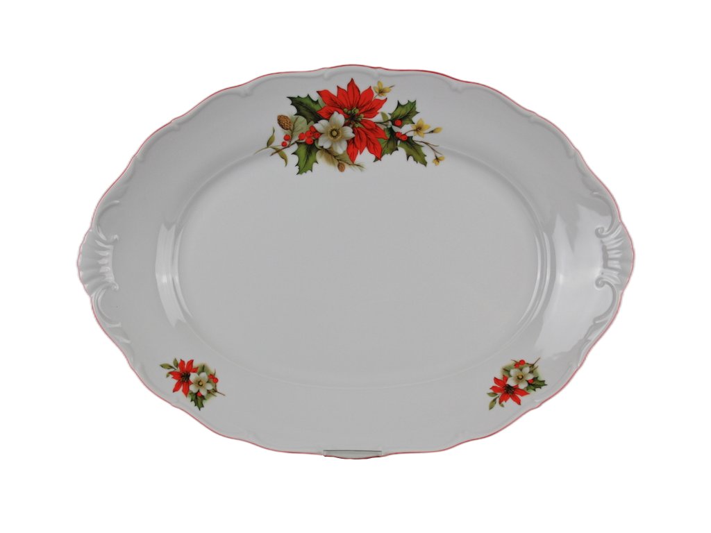 Ovál 40cm z kvalitního českého porcelánu, červený okraj (CL). Vhodný do myčky i mikrovlnné trouby.
