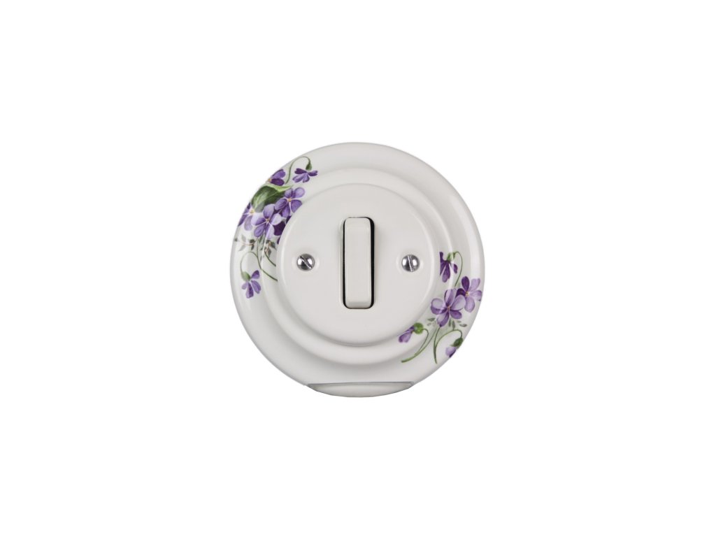 Porcelánový kolébkový vypínač č. 1 kompletní Fialky BB