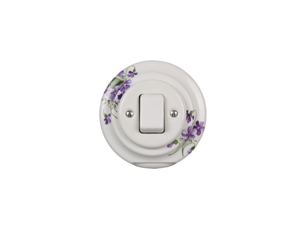 Porcelánový kolébkový vypínač č. 7 kompletní Fialky BB