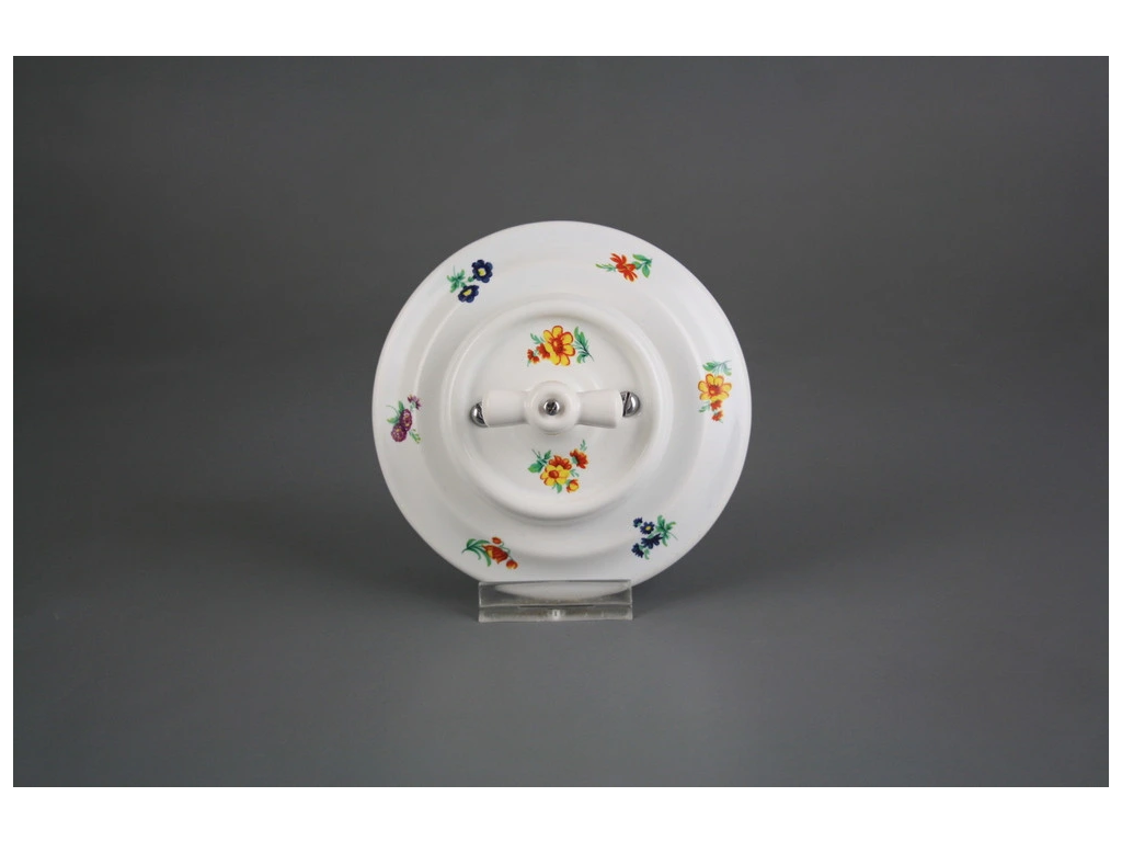 Komplett handgefertigter Drehschalter aus Porzellan (Typ Nr. 7) im klassischen Retro-Design. Das edle Dekor wird bei einer Temperatur von 820 °C eingebrannt, was eine extreme Langlebigkeit und Oberflächenbeständigkeit garantiert. Der Schalter ist für die Installation im Innenbereich konzipiert und lässt sich ideal mit allen weiteren Schaltern und Steckdosen aus unserem Sortiment kombinieren.