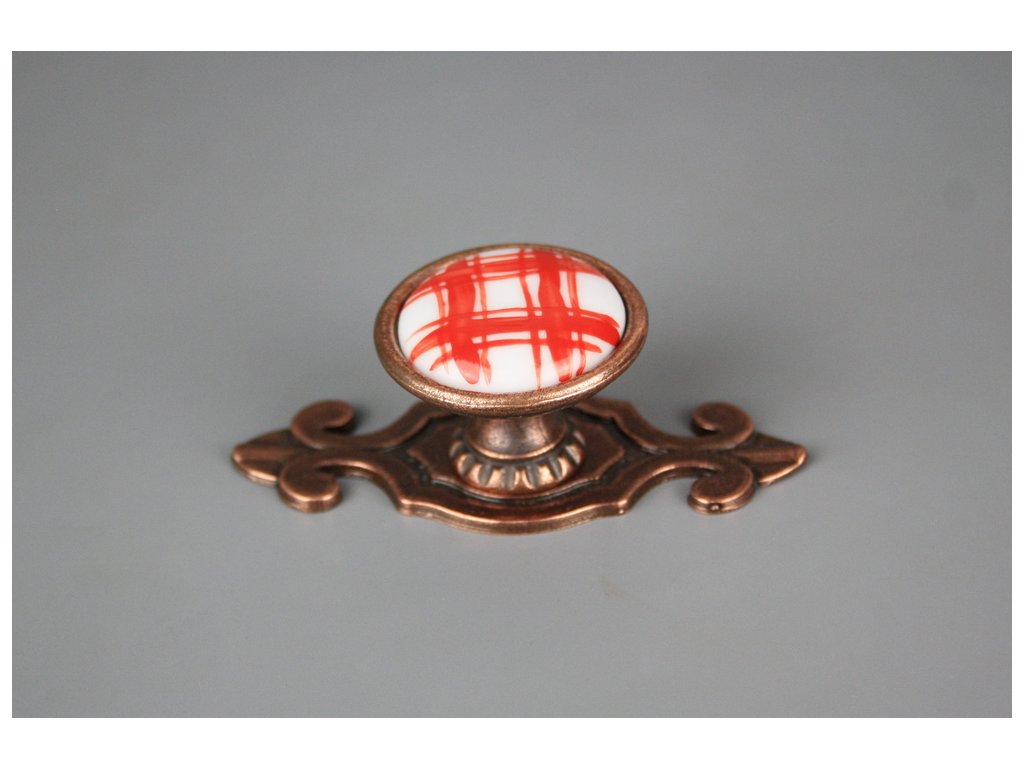 Porzellanknopf Bohemia 35mm mit Rosette Karostoff rot CU