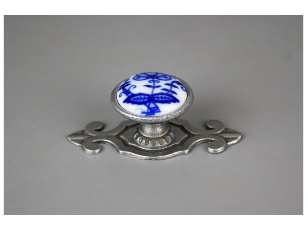 Porzellanknopf Bohemia 35mm mit Rosette Zwiebelmuster Blatt FV
