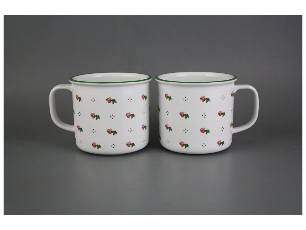 Praktický retro hrnek 0,75l z kvalitního českého porcelánu, dekorace vtavnými barvami s teplotou výpalu 1240 st. Celsia (doživotně nesmazatelný dekor). Vhodný do myčky i mikrovlnné trouby.