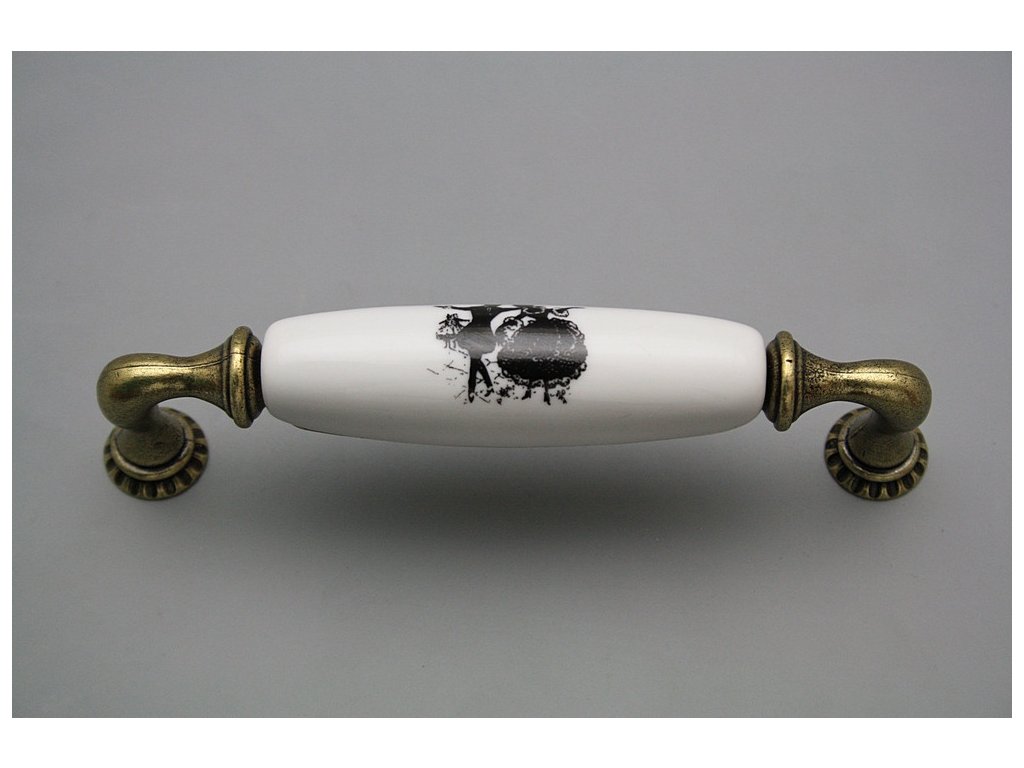 Luxuriöser rustikaler Griff aus Messing in Kombination mit dem Porzellan. Es handelt sich um echtes Karlsbader Porzellan, nicht um das Steingut, obwohl das Porzellan irrtümlicherweise von vielen Herstellern angeführt wird.