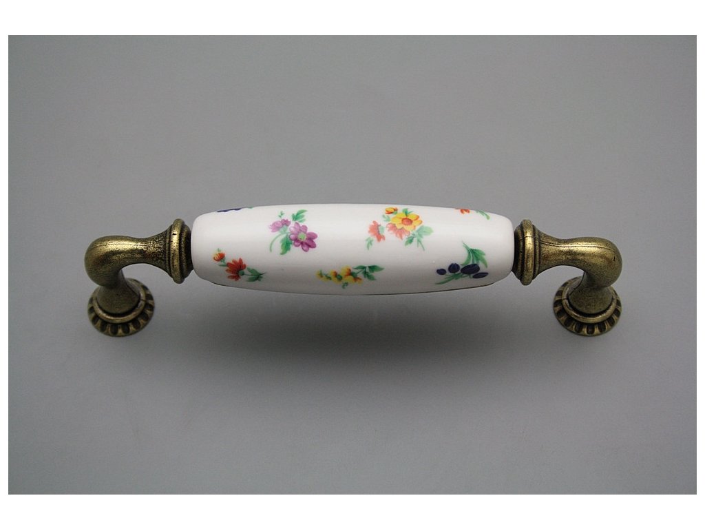 Luxuriöser rustikaler Griff aus Messing in Kombination mit dem Porzellan. Es handelt sich um echtes Karlsbader Porzellan, nicht um das Steingut, obwohl das Porzellan irrtümlicherweise von vielen Herstellern angeführt wird.