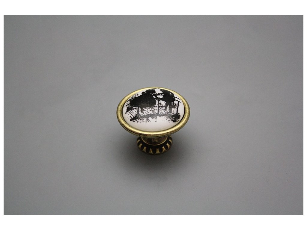 Luxuriöser rustikaler Griff aus Messing in Kombination mit dem Porzellan. Es handelt sich um echtes Karlsbader Porzellan, nicht um das Steingut, obwohl das Porzellan irrtümlicherweise von vielen Herstellern angeführt wird.