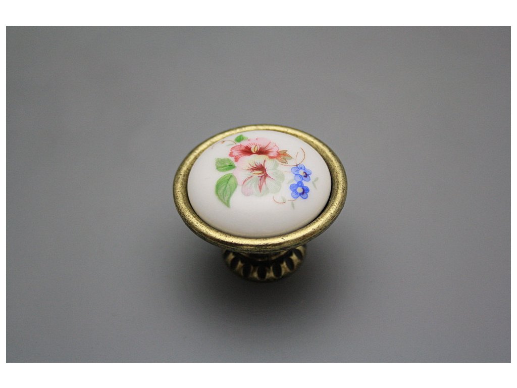 Luxuriöser rustikaler Griff aus Messing in Kombination mit dem Porzellan. Es handelt sich um echtes Karlsbader Porzellan, nicht um das Steingut, obwohl das Porzellan irrtümlicherweise von vielen Herstellern angeführt wird.