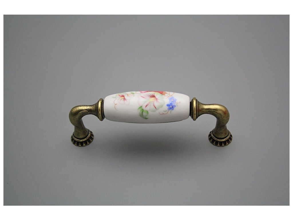 Luxuriöser rustikaler Griff aus Messing in Kombination mit dem Porzellan. Es handelt sich um echtes Karlsbader Porzellan, nicht um das Steingut, obwohl das Porzellan irrtümlicherweise von vielen Herstellern angeführt wird.