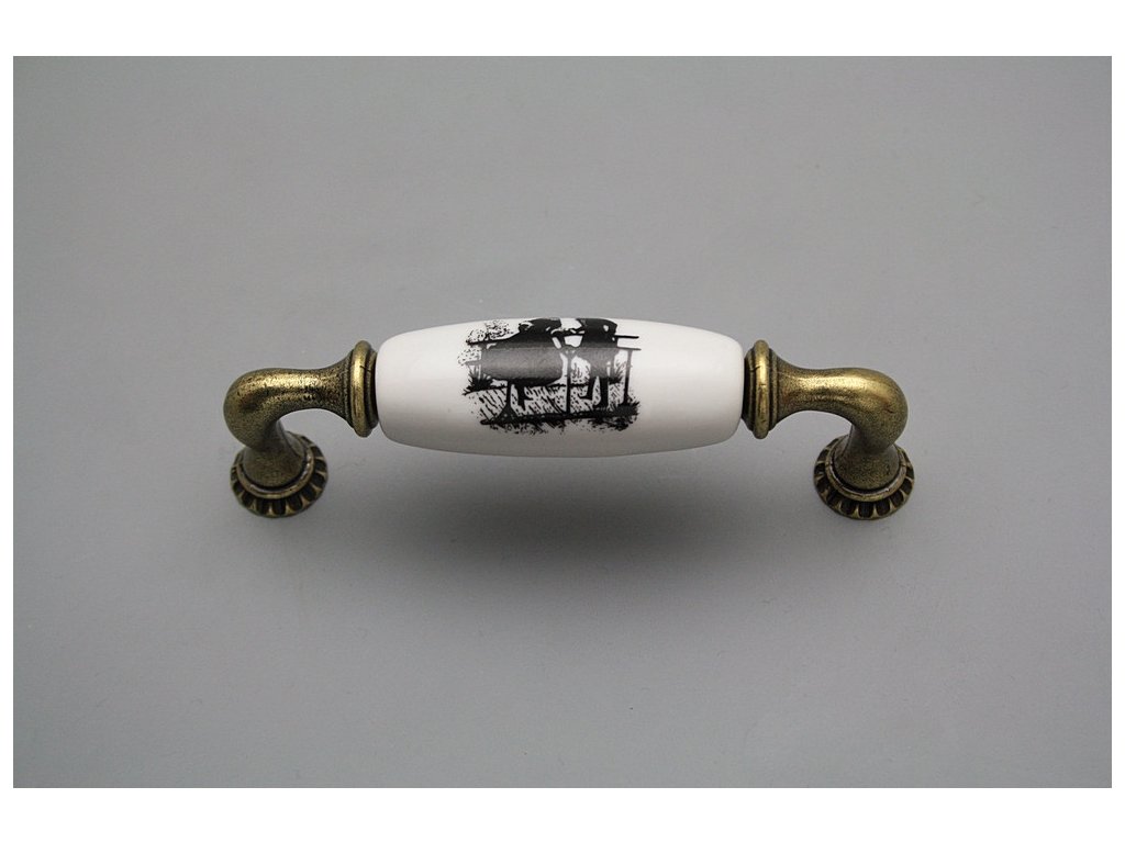 Luxuriöser rustikaler Griff aus Messing in Kombination mit dem Porzellan. Es handelt sich um echtes Karlsbader Porzellan, nicht um das Steingut, obwohl das Porzellan irrtümlicherweise von vielen Herstellern angeführt wird.