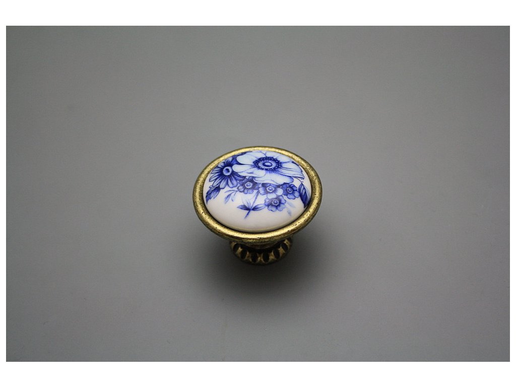 Rustikaler Porzellanknopf Bohemia 40mm Blue Floral