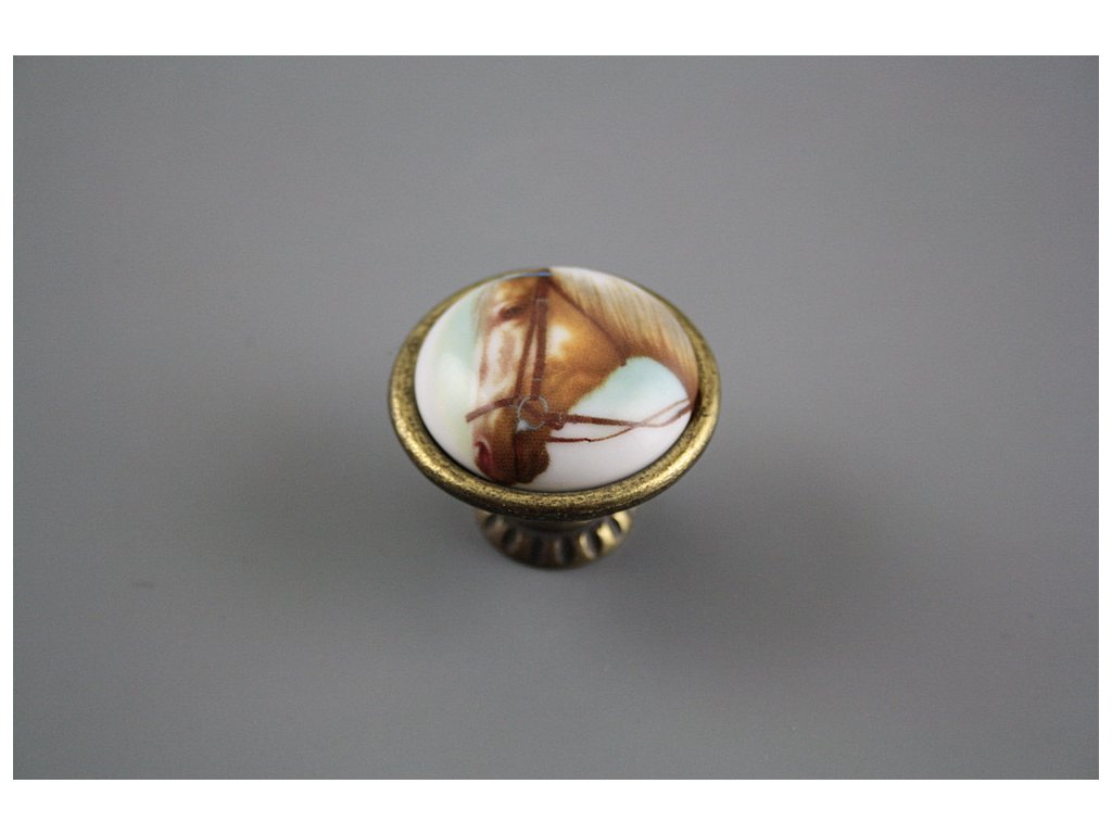 Rustikaler Porzellanknopf Bohemia 40mm Pferde
