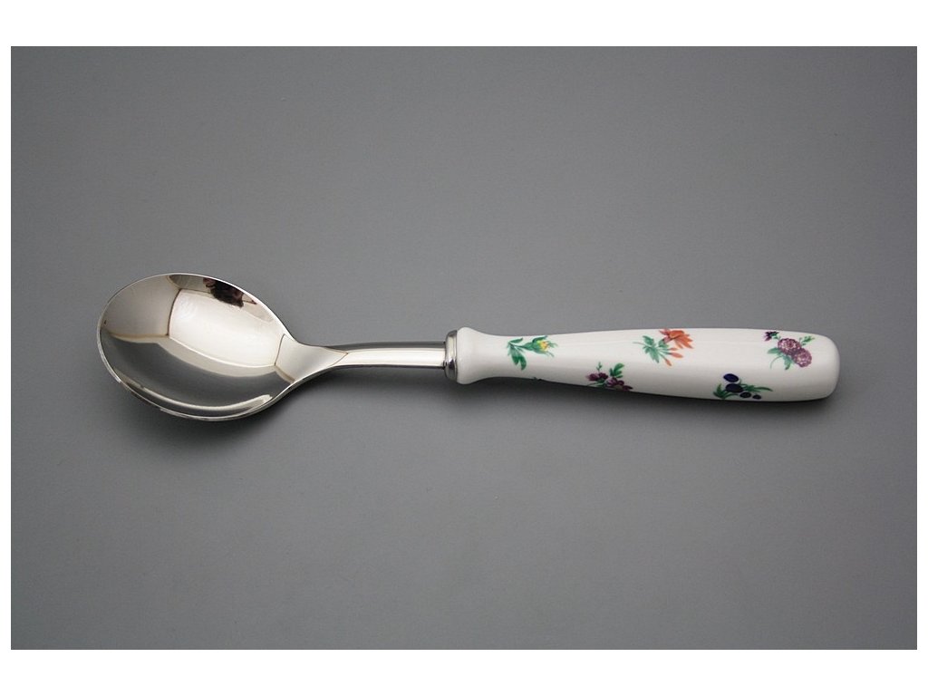 Luxuriöser Sahnelöffel mit dem Porzellanhandgriff aus dem harten Porzellan.