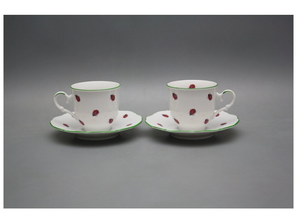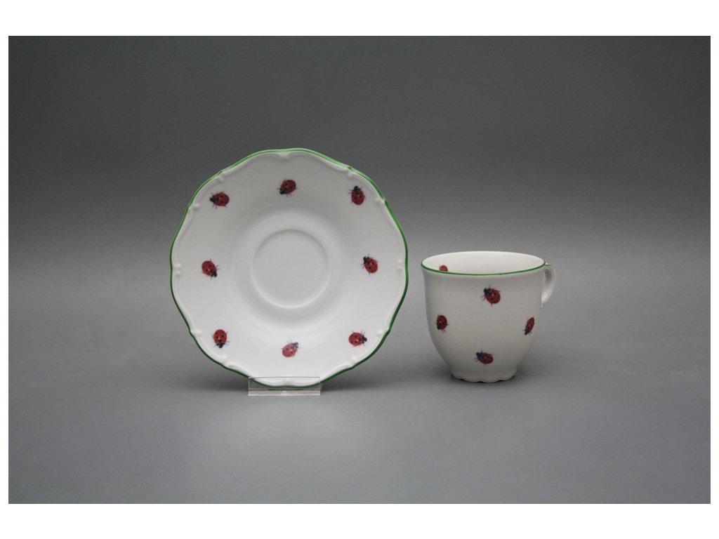Praktický šálek 0,135l s podšálkem z kvalitního českého porcelánu, zelený okraj (ZL). Vhodný do myčky i mikrovlnné trouby.
