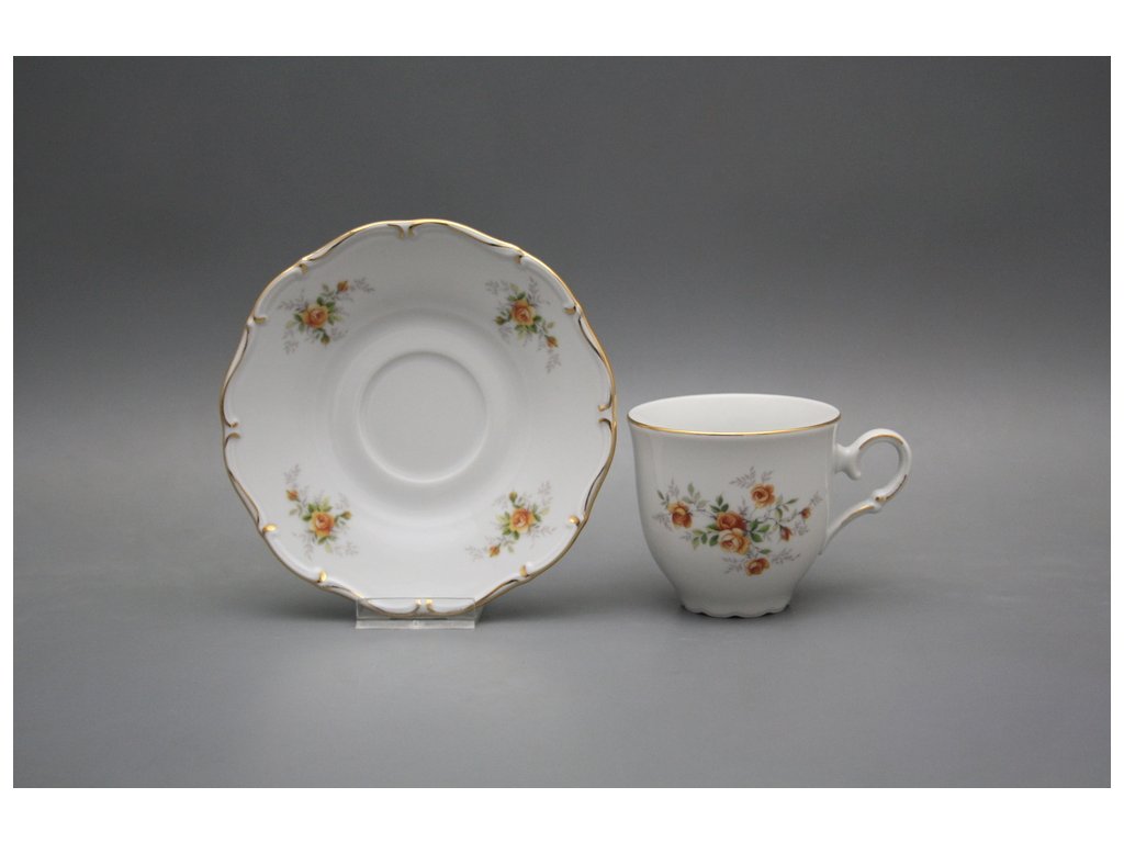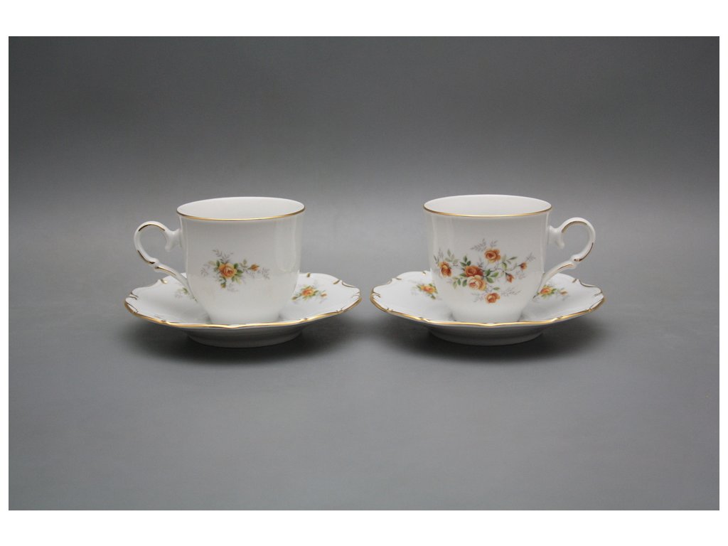 Luxusní šálek 0,135l s podšálkem 135mm z kvalitního českého porcelánu, dekorace lesklým zlatem (GL). Nevhodný do myčky i mikrovlnné trouby.