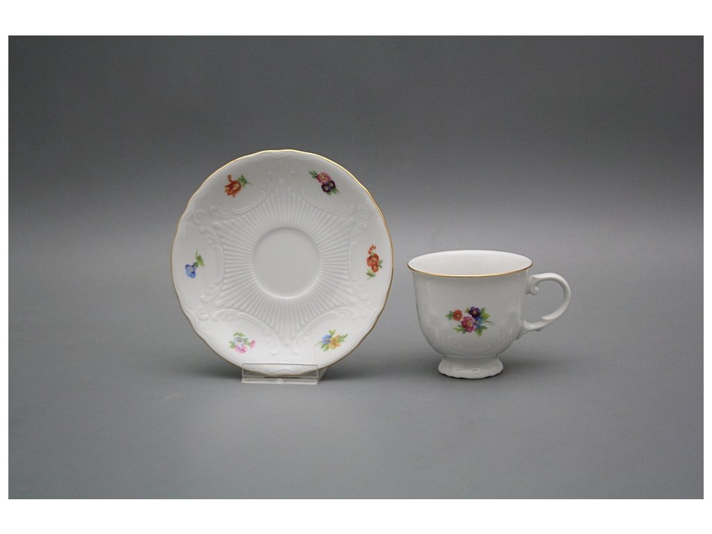 Luxusní šálek 0,08l s podšálkem 16cm z kvalitního českého porcelánu. Vhodný do myčky i mikrovlnné trouby.