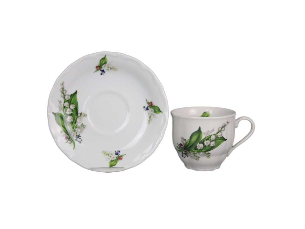 Praktický kávový šálek 0,18l s podšálkem 15cm z kvalitního českého porcelánu, bez barevného okraje (BB). Vhodný do myčky i mikrovlnné trouby.