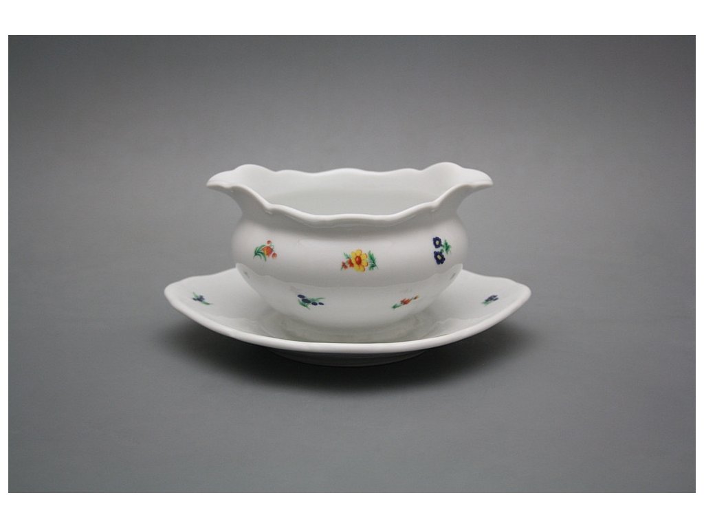 Praktische Soßenschüssel 0,45l (zusammen mit Untertasse) gefertigt aus böhmischem Markenporzellan von höchster Qualität.
